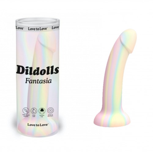 Фаллоимитатор FANTASIA - пастельные тона разноцветных полос, нежный и в то же время соблазняющий, перенесет вас в страну чудес. Плюс дополнительное премиущество фаллоимитатор FANTASIA: он светится в темноте!