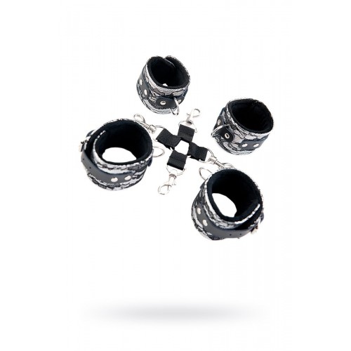 Кружевной бондажный комплект TOYFA Marcus (сцепка, наручники и оковы), серебряная