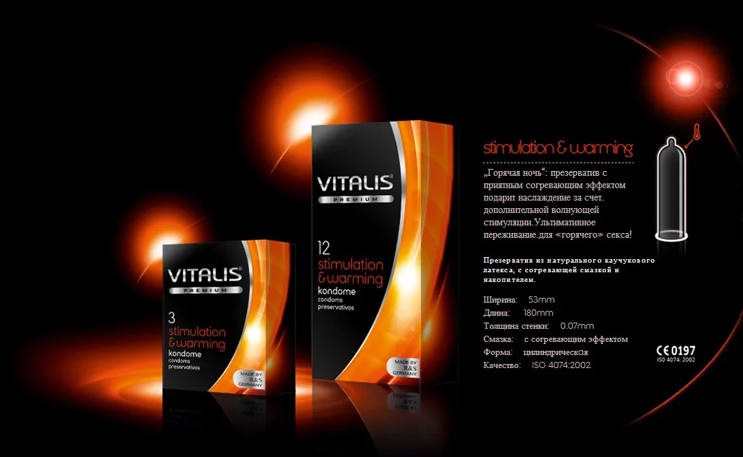 Презервативы Vitalis №3 Stimulation and Warming из натурального каучукового латекса с согревающей смазкой и накопителем подарят Вам новые впечатления от секса.
