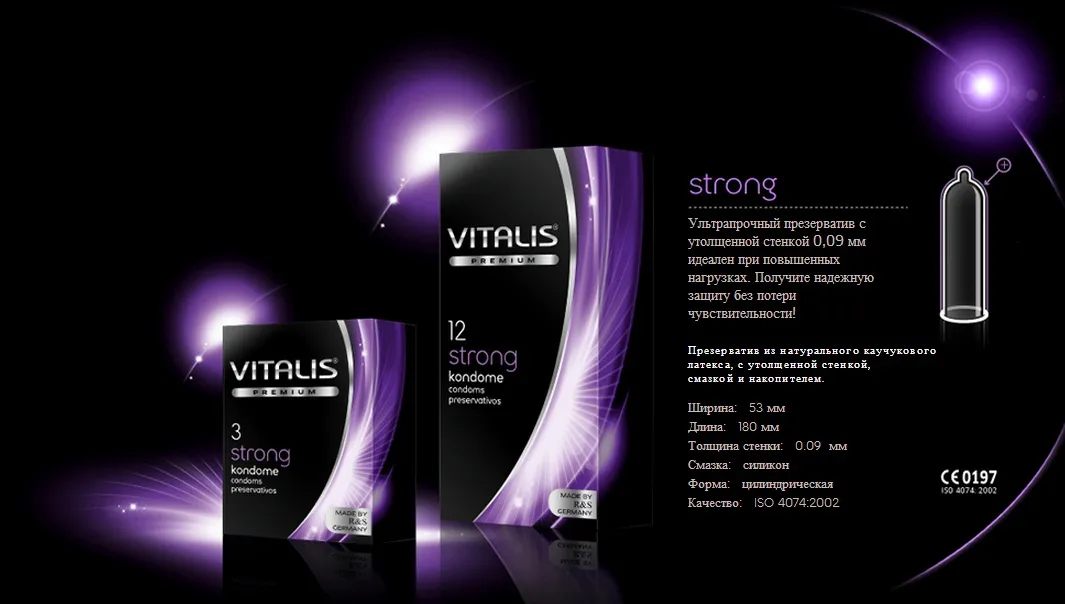 C презервативами Vitalis Premium №3 Strong Вы можете полностью расслабиться и максимально прочувствовать партнера, так как будете уверены, что сверхпрочные презервативы не подведут в самый неподходящий момент.
