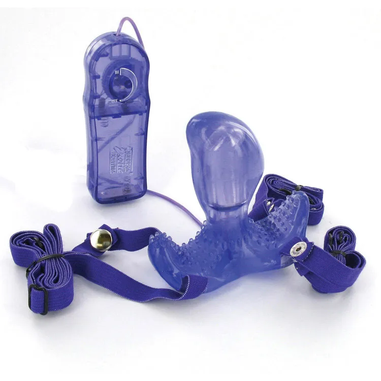 Стимулятор крепится на теле девушки с помощью резинок, размер которых регулируется.
